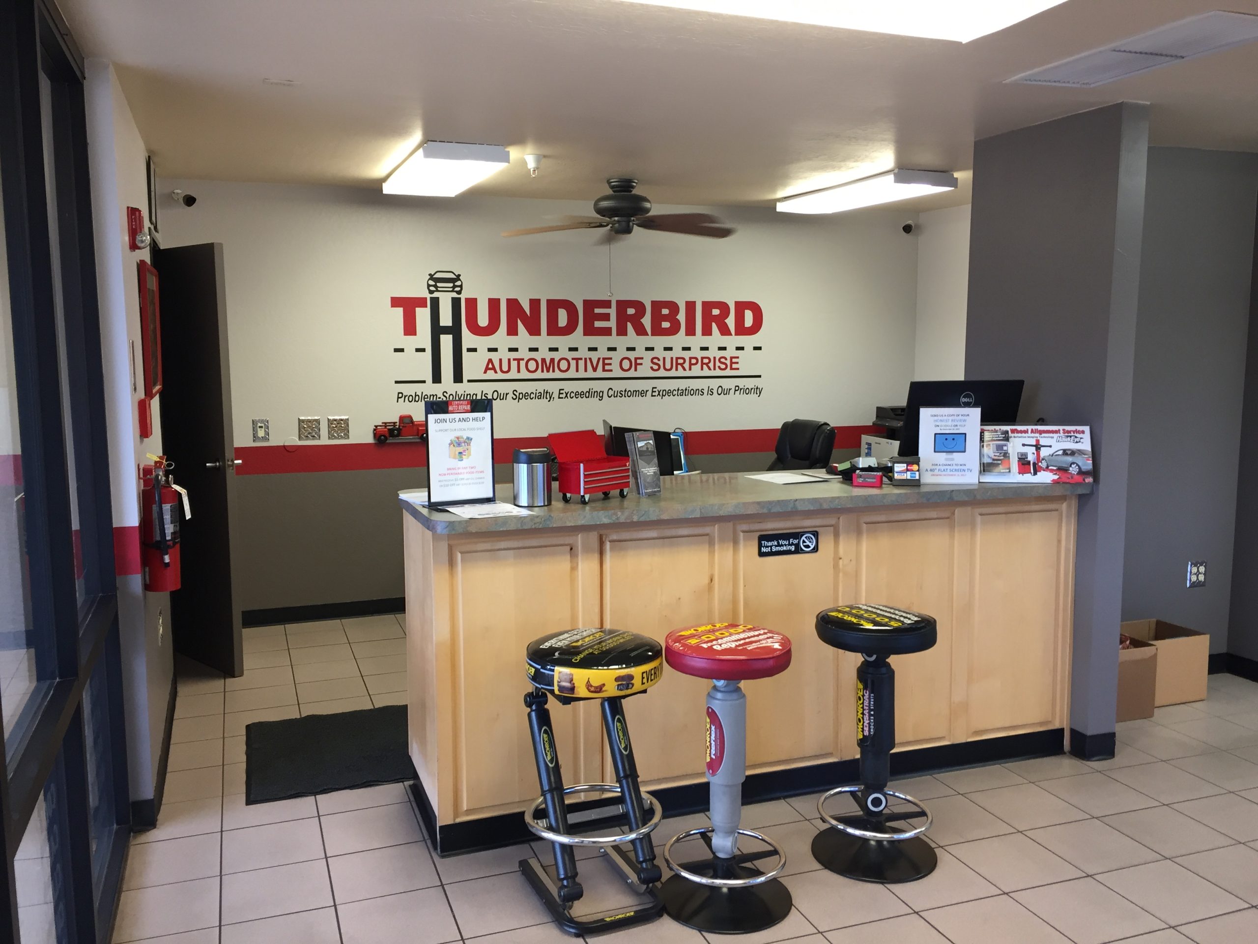 When that dreaded check engine light appears, don’t panic – bring your vehicle to our diagnostic experts who use the latest OBD-II scanners and computerized equipment to quickly identify the root cause of the problem. Our diagnostic process goes beyond simply reading trouble codes; we perform comprehensive testing of engine sensors, emissions systems, and electronic components to ensure accurate repairs the first time. Our dedication to customer education and transparency throughout every repair process sets Thunderbird Automotive of Surprise apart. We provide detailed explanations of findings, digital inspection reports, and clear estimates before any work begins, so you never face unexpected surprises. Our comfortable waiting area and convenient location make it easy to drop off your vehicle during our business hours of Mon-Fri: 7:30 am – 5:00 pm, and we offer shuttle services to minimize disruption to your daily routine. Ready to experience the difference that honest, expert auto repair can make? Call us today at (623) 882-8990 to schedule your appointment and discover why Surprise residents trust Thunderbird Automotive of Surprise for all their automotive needs.